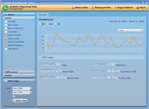 The second application that I tested is Analytics Reporting Suite, and damn this is such a good tool it allows you to quickly login to your Google Analytics account and read the information from it. It's almost like the web version but has some limitations.